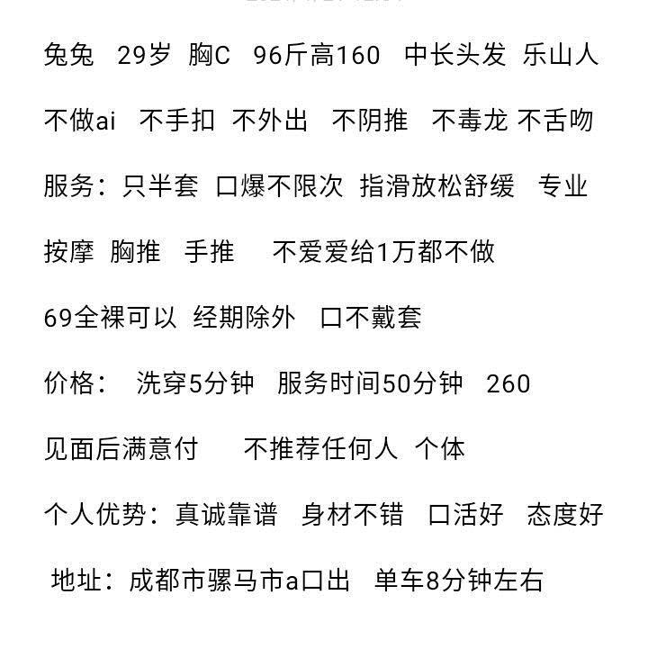 妹子现在只做口爆,口技很巴士,过程也不催人,本人被口了20多分钟换了几个姿势方位交货,之前260的现